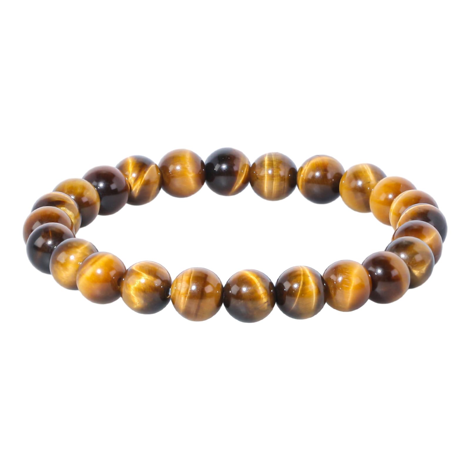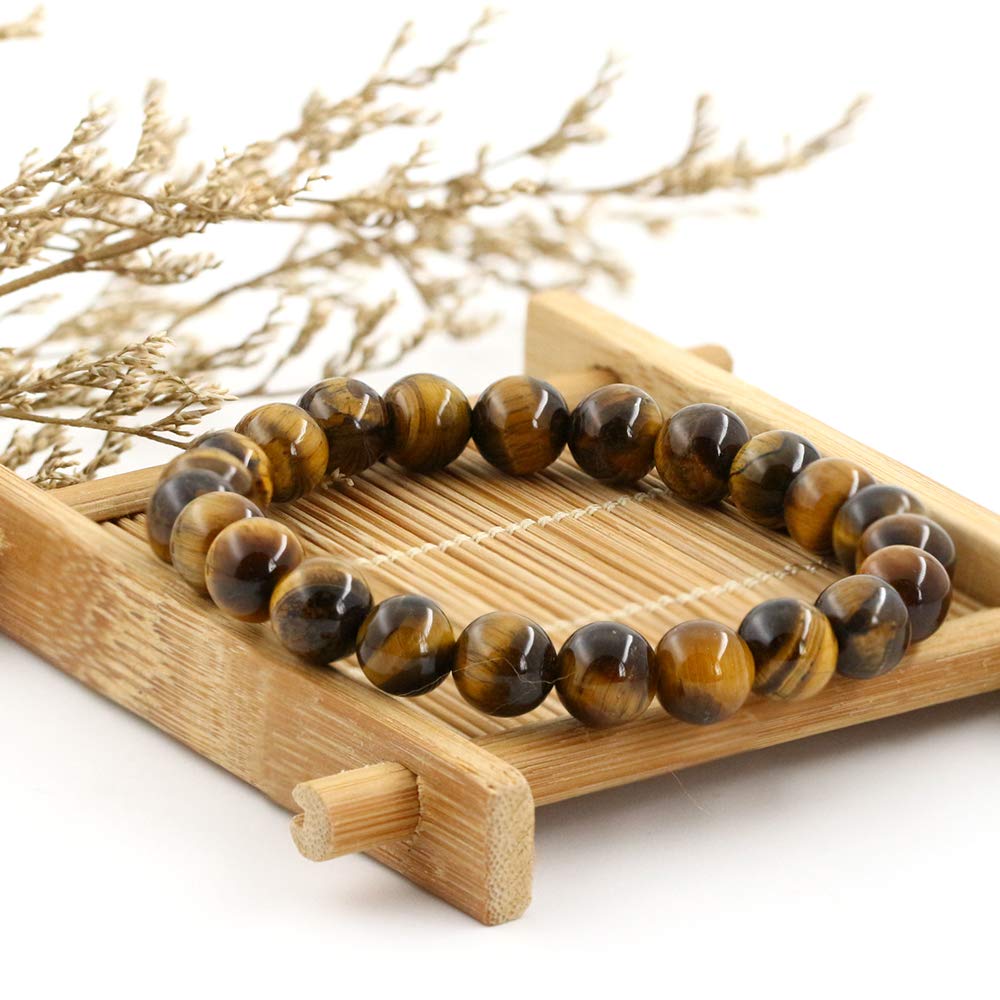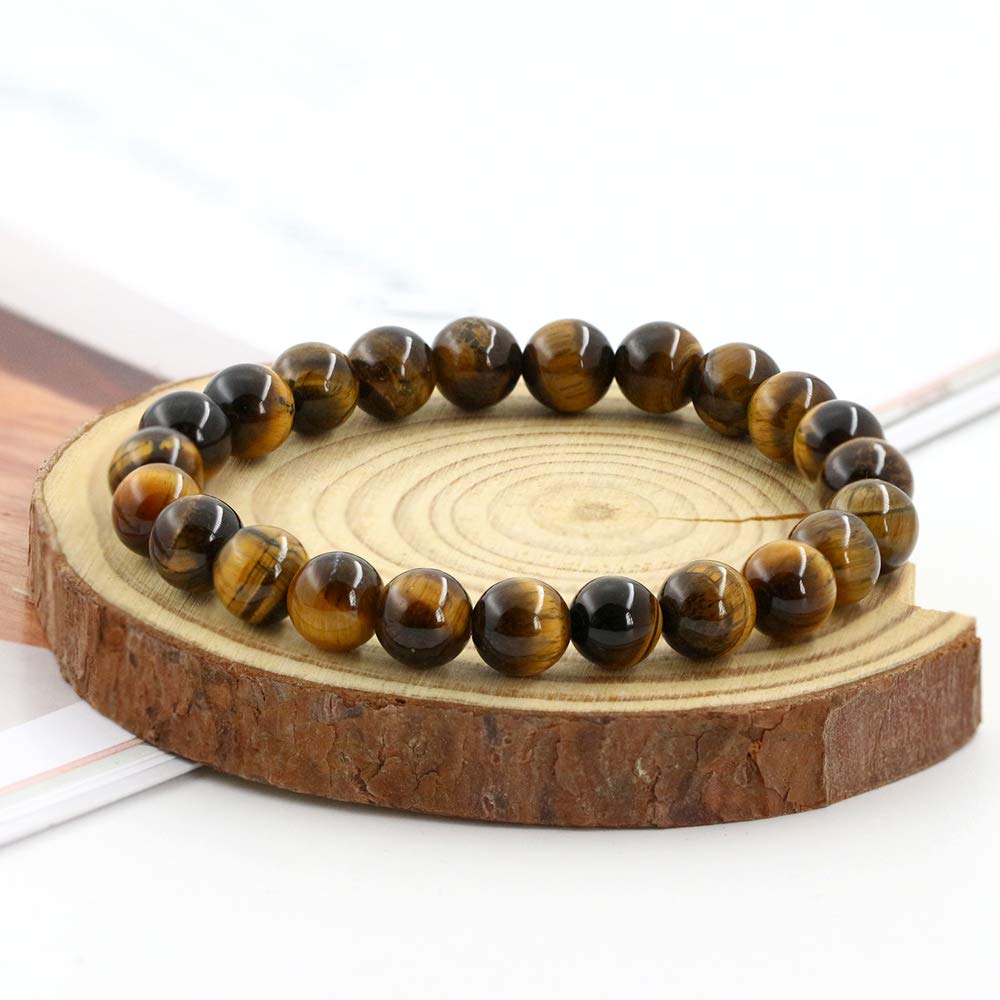 8mm Natural Gemstones Round Beads Energy Power Crystal Chakra Reiki Healing Elastic Stretch Bracelet 7 Inch Unisex-Tiger Eye Stone