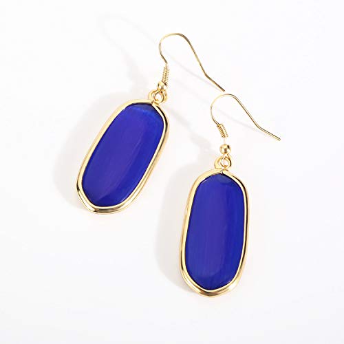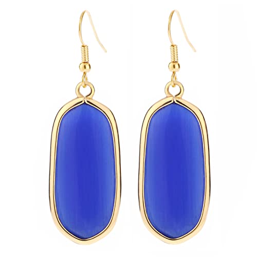 Natural Crystal Healing Stone Drop Dangle Earrings for Women – Oval Blue Cat Eye Stone