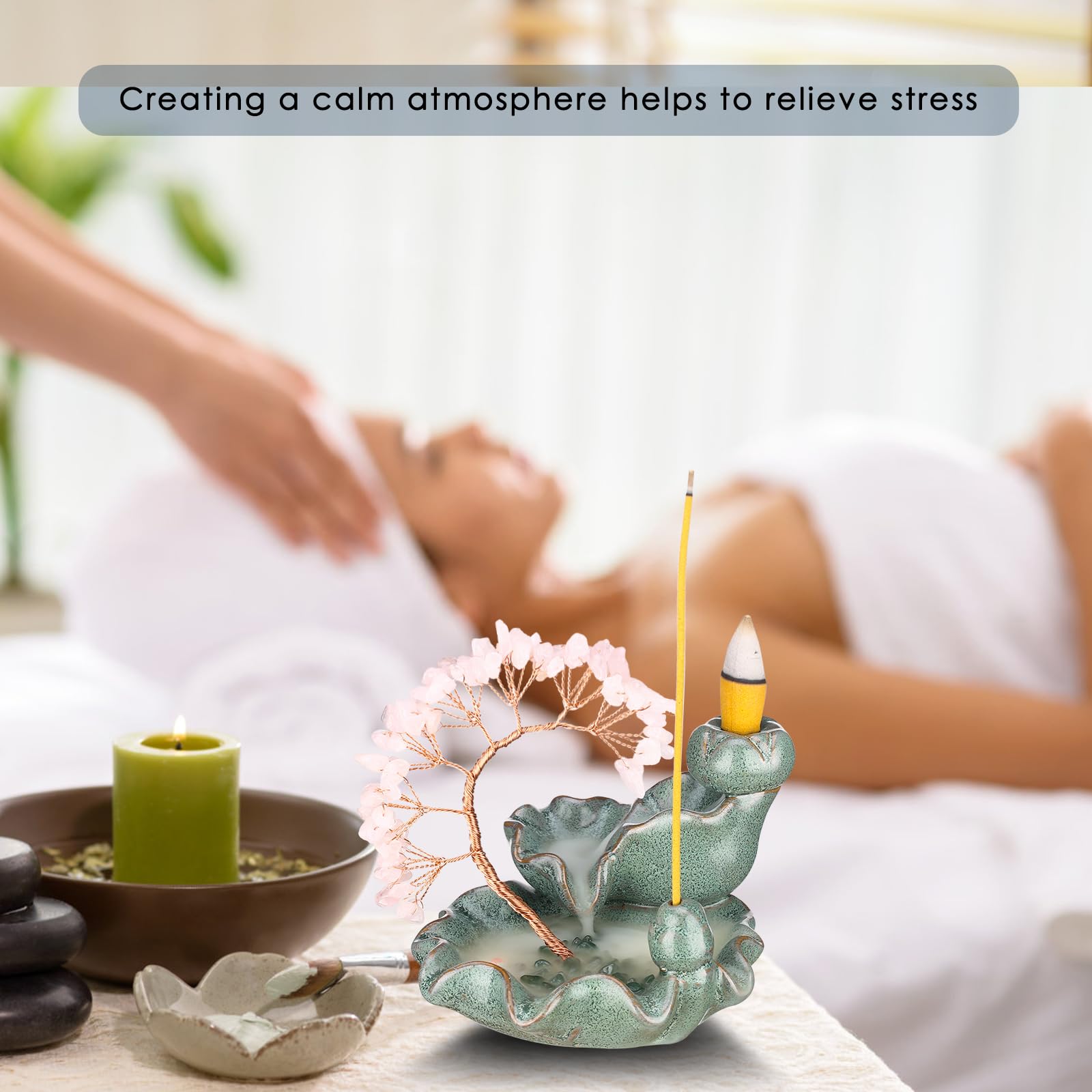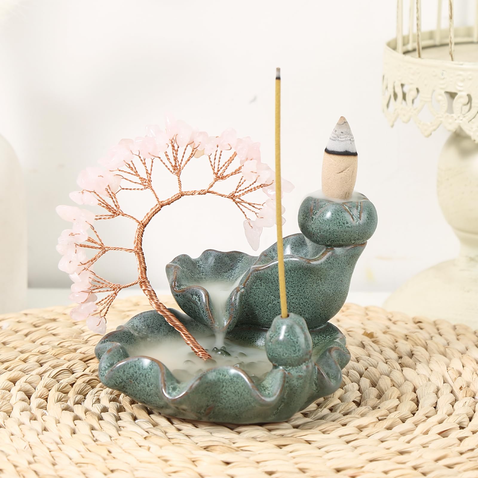 Incense Waterfall Moon Backflow Incense Burner Ceramic Incense Holders Rose Stone Crystal Tree Incense Holder Namaste Yoga Meditation and Home Decor