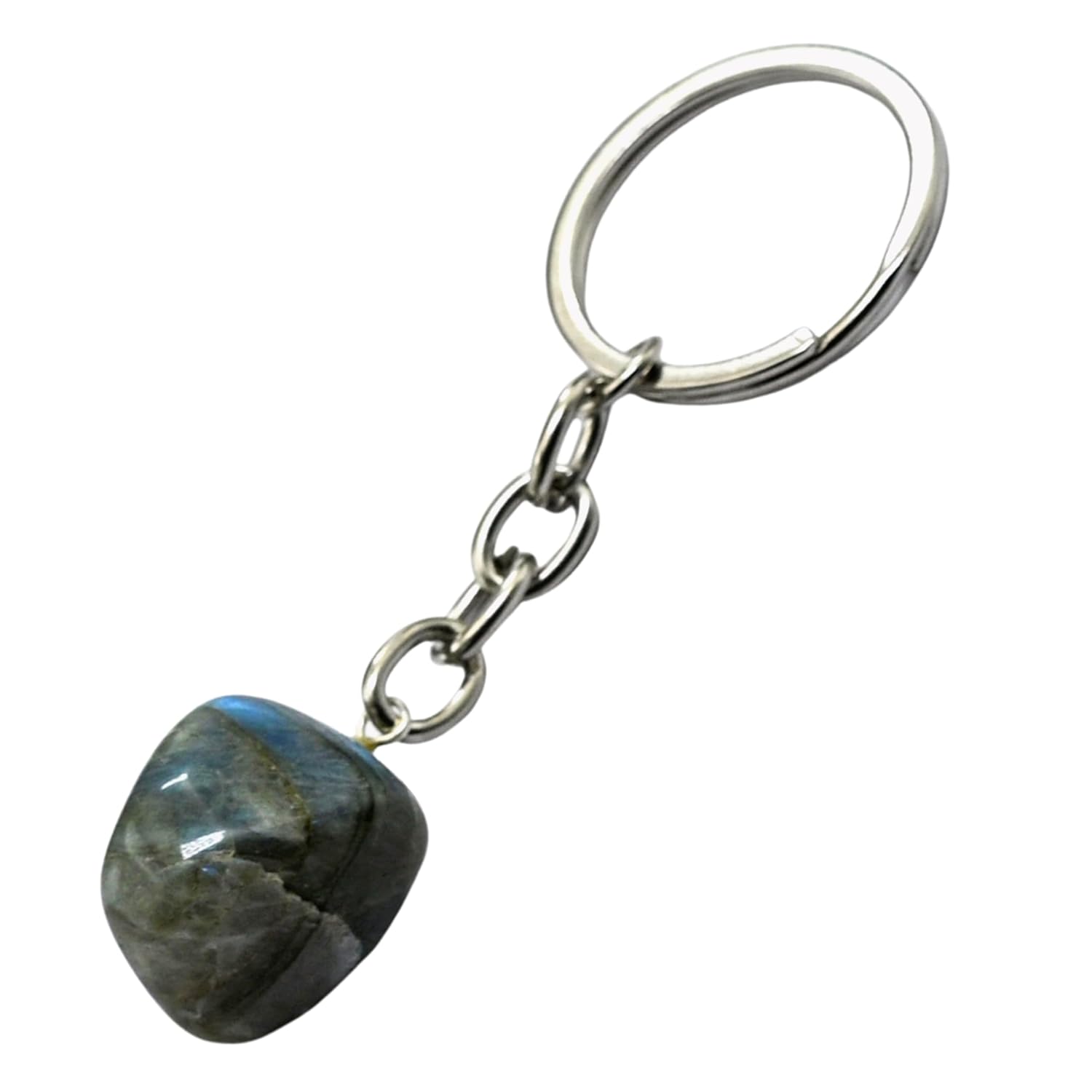 Labradorite Crystal Car Key Holder – Crystals and Healing Stones Car Keys Keychain for Gift for Christmas Stockings Stuffers for Women Men Teen Kids (Tumbled Crystal Keychain)