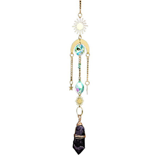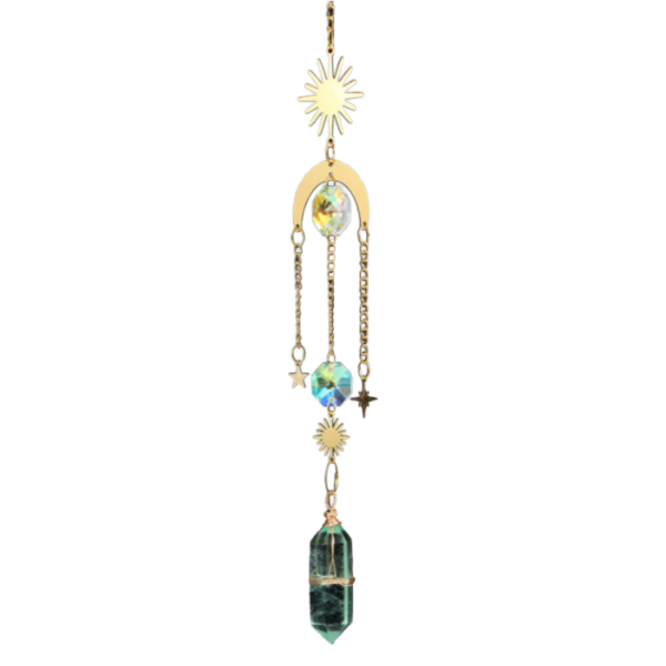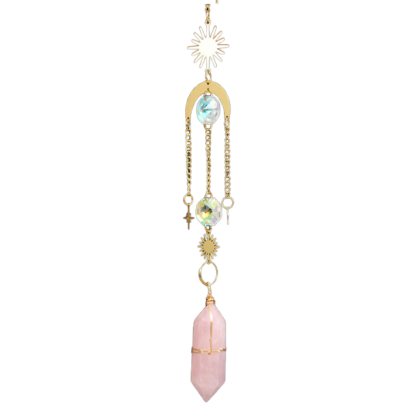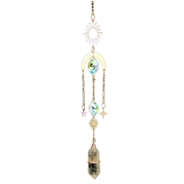 Be the first to review “Natural white crystal double pointed column sun catcher wind chime” Cancel reply