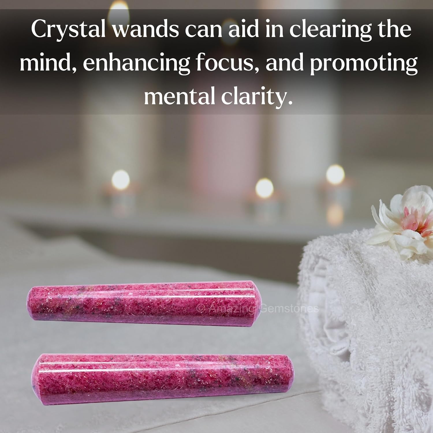 (Smooth) Rhodonite Crystal Wand Massage Stick – Pelvic Wand Gua Sha for Adults – Crystals and Healing Stones Massage Wands for Adults Gifts